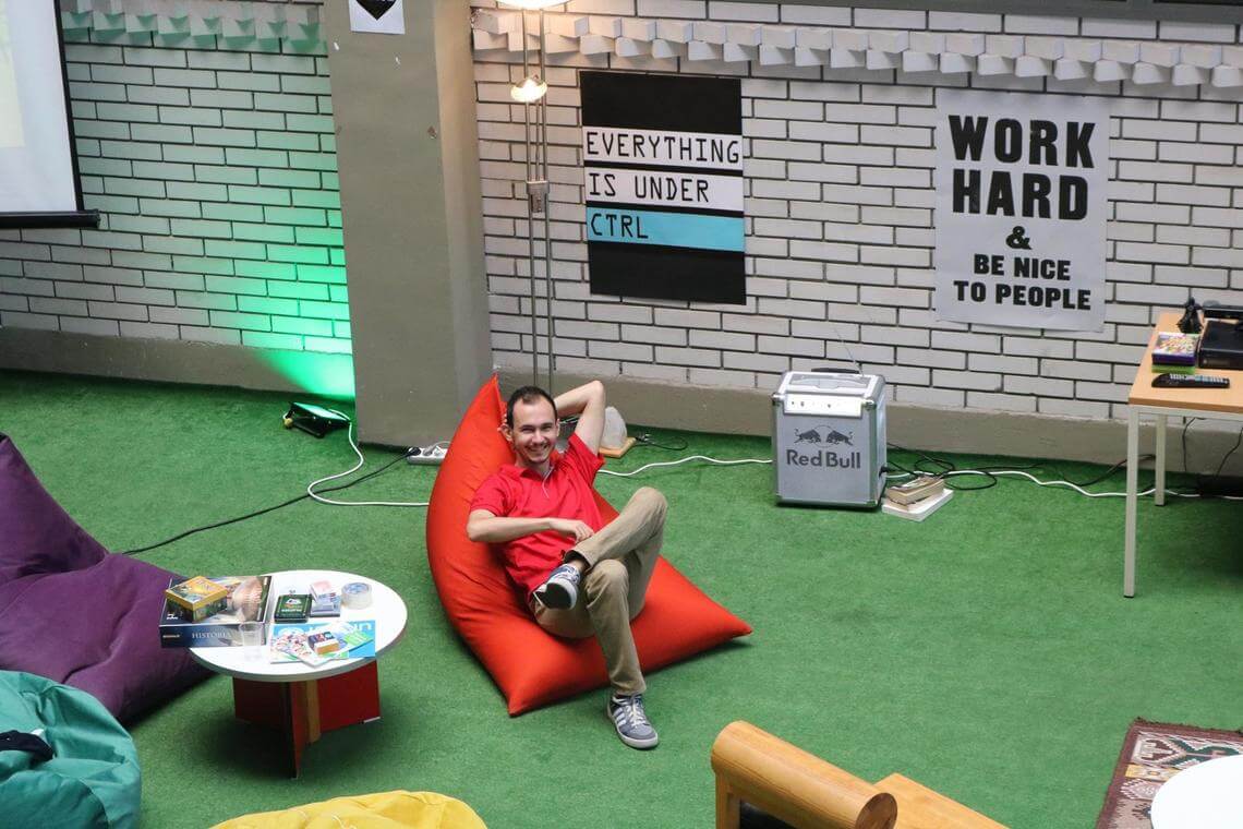 Marko, our volunteer taking a break in our event chill area (2018)