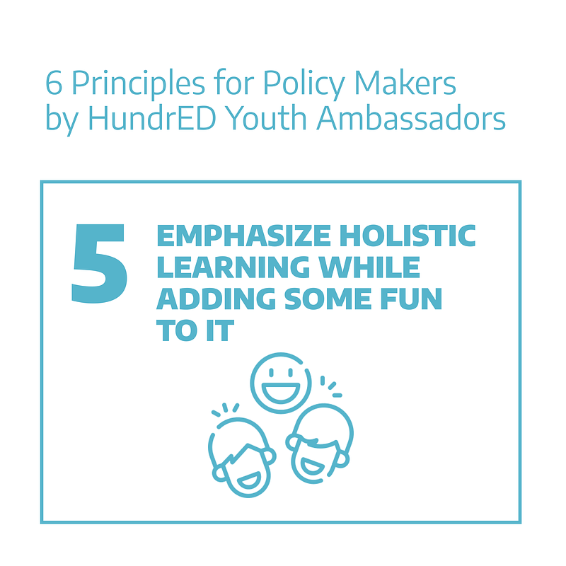 We asked HundrED's Youth Ambassadors what they would like education policy makers to know about their needs. Six main themes stood out: